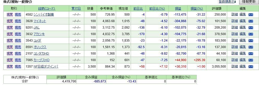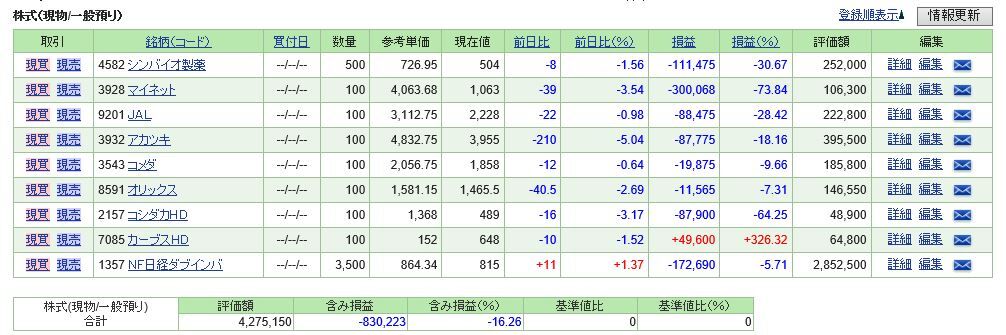 生涯収支は実損益が-80万円ほどあるので含み損と合わせて-160万円ぐらいですw