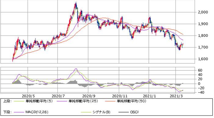一時1700ドルを突き抜けて1600ドル台までいきましたが持ち直し