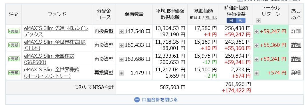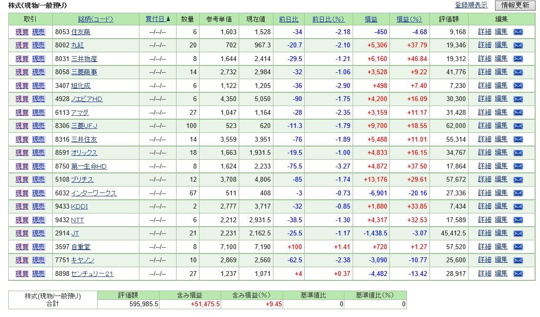 最近放置状態ですが含み益が増えているのは嬉しいです。