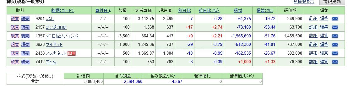 ダブルインバースの含み損は相変わらずですが、マイネットがさらにひどいことに