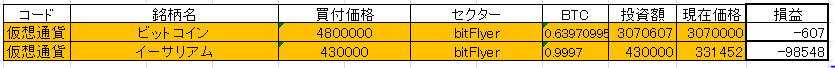ビットコインはトントンですがイーサリアムが駄目ですね・・・