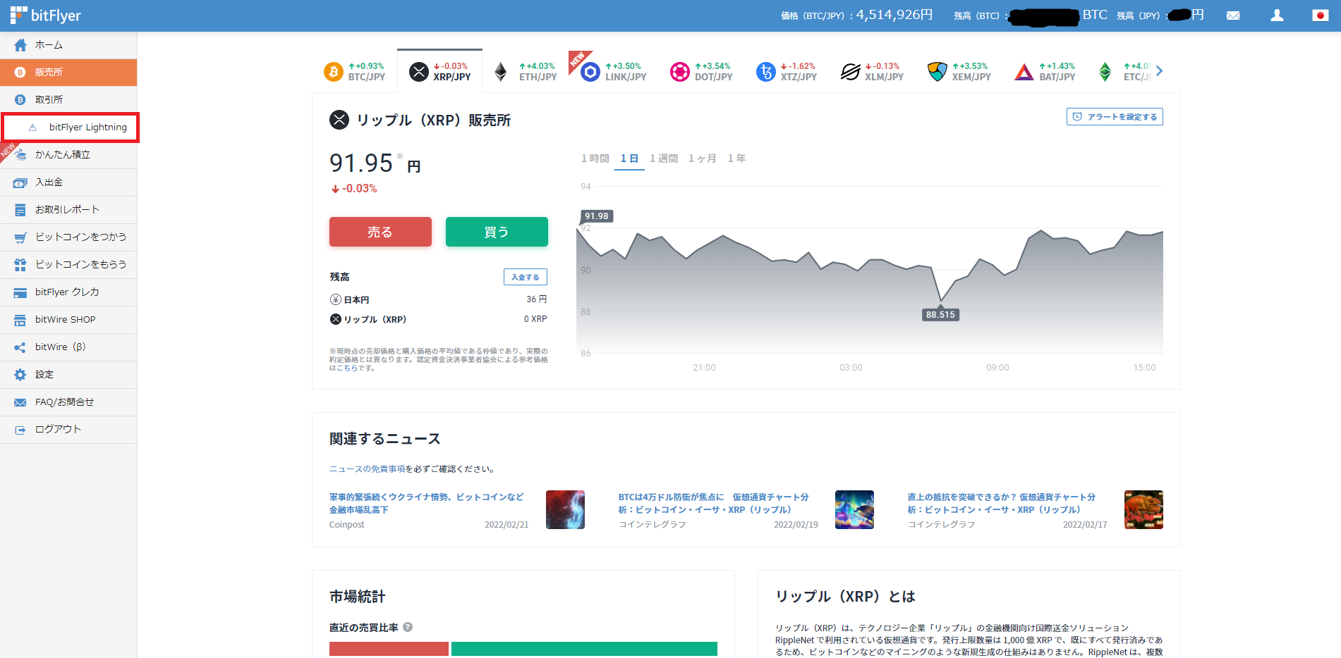 そこでPCのbitFlyer LightningでXRPを購入してください。