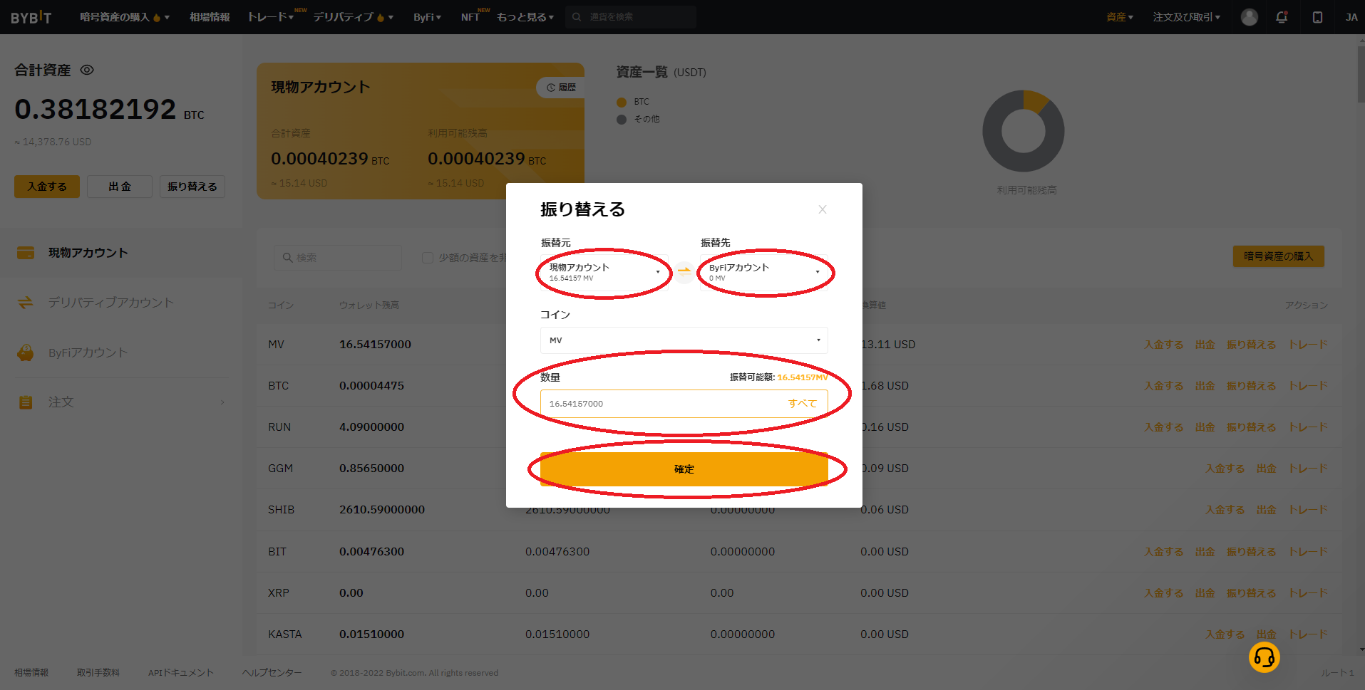 3つあり、ステーキングするには現物アカウントからByfiアカウントへ