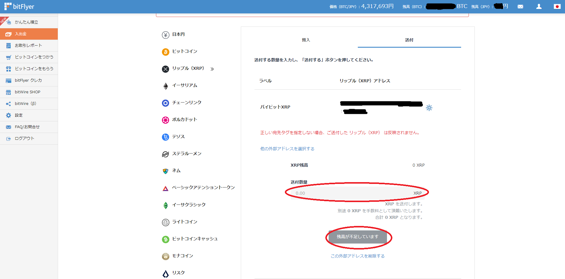 ※写真ではXRPが入っていない為残高が不足していますとなってますが、