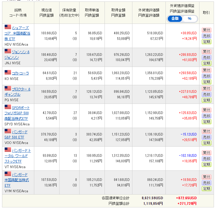 先月より-5万円ほど含み益が減りましたね。