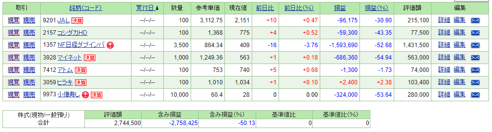 先月より10万円ほど含み損が減ってるぐらいですねw