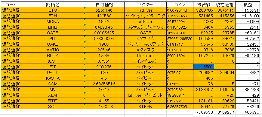 50万円くらい投資しているので一時的に資産は減っていますねw