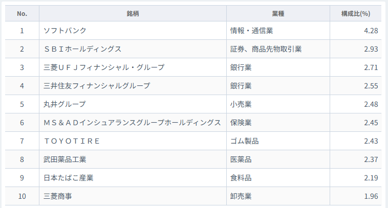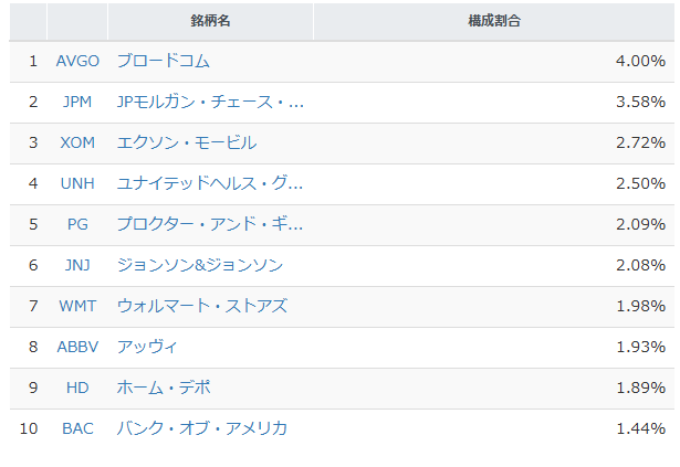 米国高配当ETFのVYMがマザーファンドの投資信託で組入れ銘柄は586社にもなります