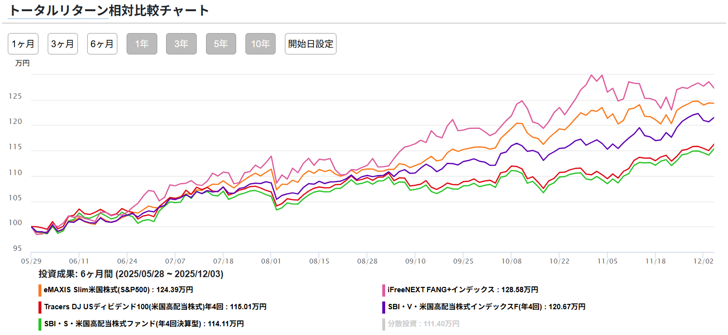 ※eMAXIM Slim S&P500は比較用チャートで載せています